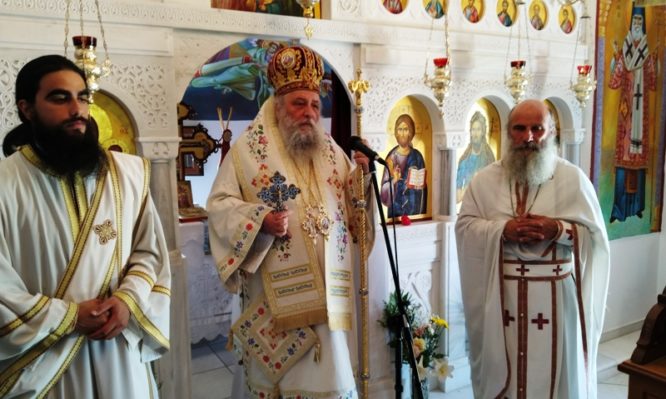 Ο Σεβασμιώτατος Μητροπολίτης μας κ. Καλλίνικος μετέβη την Πέμπτη 25-5-2023 στον ως άνω Ιερό Ναό, όπου χοροστάτησε στον Όρθρο, ευλόγησε τους προσφερθέντες άρτους και προεξήρχε της Θείας Λειτουργίας, πλαισιούμενος από τον οικείο Εφημέριο Πρωτοπρ. Συμεών Τελόπουλο και τον Διάκονο Νεκτάριο Σκουλάτο. Κατά την διάρκεια του Κοινωνικού ο Σεβασμιώτατος κήρυξε τον θείο λόγο ενώ προ του «Δι’ ευχών» απηύθυνε ευχές προς όλους.