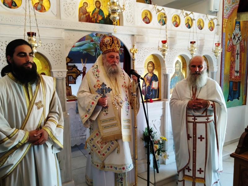 Ο Σεβασμιώτατος Μητροπολίτης μας κ. Καλλίνικος μετέβη την Πέμπτη 25-5-2023 στον ως άνω Ιερό Ναό, όπου χοροστάτησε στον Όρθρο, ευλόγησε τους προσφερθέντες άρτους και προεξήρχε της Θείας Λειτουργίας, πλαισιούμενος από τον οικείο Εφημέριο Πρωτοπρ. Συμεών Τελόπουλο και τον Διάκονο Νεκτάριο Σκουλάτο. Κατά την διάρκεια του Κοινωνικού ο Σεβασμιώτατος κήρυξε τον θείο λόγο ενώ προ του «Δι’ ευχών» απηύθυνε ευχές προς όλους.