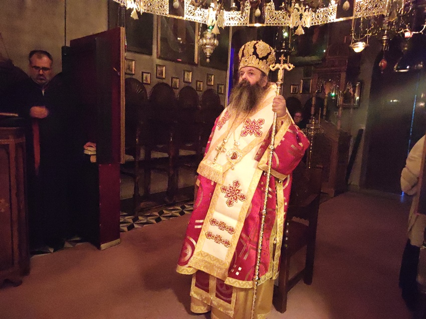 Ο Θεοφιλέστατος στην ομιλία του προς τους ευλαβείς προσκυνητές της Ι. Μονής ανεφέρθη με αφορμή την εορτή της Υπαπαντής του Κυρίου στο «Βρέφος Ιησούν» που, όπως όλα τα βρέφη, είχε ανάγκη από τα πάντα. Η Θεοτόκος Μαριάμ, η Παναγία Μητέρα Του το εφρόντιζε με την παρθενική στοργή της. Με ιδιαίτερη μέριμνα, ως όργανο της ενανθρωπήσεως, το ανέτρεφε. Ο νομιζόμενος πατέρας Του ο σώφρων και ο Δίκαιος Ιωσήφ εξοικονομούσε όλα όσα ήταν απαραίτητα. Εκοπίαζε, εργαζόταν «ο τέκτων». Επροστάτευε το Θείο Βρέφος και την Μητέρα Του. Όλα εγίνοντο με συνηθισμένο οικογενειακό ρυθμό. Ακόμη και ό,τι είχε ορίσει ο Θεός με τον Μωσαϊκό νόμο για κάθε οικογένεια το ετήρησε η Θεία Οικογένεια. Έτσι την όγδοη ημέρα από την Γέννησή Του το Βρέφος περιτέμνεται˙ «καί ἔσται πᾶς ὅς τέξῃ παιδίον ἄρσεν, τῇ ἡμέρᾳ τῇ ὀγδόῃ περιτεμεῖ τὴν σάρκα τῆς ἀκροβυστίας αὐτοῦ»( Λευ. ιβ΄, 3) και γίνεται η ονοματοδοσία Του. Και τώρα Βρέφος σαράντα ημερών, έχουν ανεβάσει τον Ιησούν οι γονείς Αυτού στα Ιεροσολύμα, για να Τον αφιερώσουν στον Θεό, σύμφωνα με τον Νόμο˙ «εἶπε δὲ Κύριος πρὸς Μωϋσῆν λέγων· ἁγίασόν μοι πᾶν πρωτότοκον πρωτογενὲς διανοῖγον πᾶσαν μήτραν ἐν τοῖς υἱοῖς Ἰσραὴλ» (Εξοδ. ιγ΄, 1-2) και να προσφέρουν θυσίαν «κατὰ τὸ εἰρημένον» (Λουκ. β’, 24). Εκεί λαμβάνει χώρα η συνάντηση, η «υπαντή» του πρεσβυτού Συμεών με τον Σωτήρα του κόσμου ως και οι προφητείες του Ιερομύστου και της Προφήτιδος Άννης, ώστε να σημειώνει ο Λουκάς «ο ιατρός ο αγαπητός»: «Καὶ ἦν Ἰωσὴφ καὶ ἡ μήτηρ αὐτοῦ (του Ιησού) θαυμάζοντες ἐπὶ τοῖς λαλουμένοις περὶ αὐτοῦ» (β΄, 33)! Θαυμάζουν ο Ιωσήφ και η Θεομήτωρ, γιατί όλα όσα ακούν στον Ναό του Θεού περί του Βρέφους είναι απόλυτα σύμφωνα με όσα οι Άγιοι Άγγελοι τους είχαν πληροφορήσει.