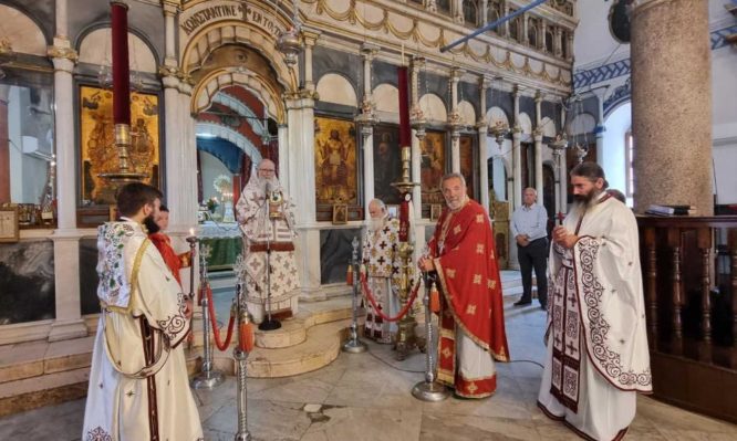 Τῆς Ἱερᾶς Πανηγύρεως προέστη, τῇ κανονικῇ ἀδείᾳ καί προτροπῇ τοῦ Σεβ. Ποιμενάρχου μας κ. Χρυσοστόμου, ὁ Σεβ. Μητροπολίτης Προικοννήσου κ. Ἰωσήφ, συμπαραστατούμενος ἀπό τόν Αἰδεσιμ. Ἀρχιερατικό Ἐπίτροπο Μεγίστης, Πρωτοπρ. Γεώργιο Μαλτέζο, τόν Αἰδεσιμ. Πρεσβ. π. Σταῦρο Ψαρομμάτη, φιλοξενούμενον κληρικό τῆς Ἱ. Ἀρχιεπισκοπῆς Αὐστραλίας, τόν Αἰδεσιμ. Πρεσβ. Γεώργιο Κακακιό καί τόν Εὐλαβ. Ἱεροδιάκονο Παῦλο Τερεζάκη.