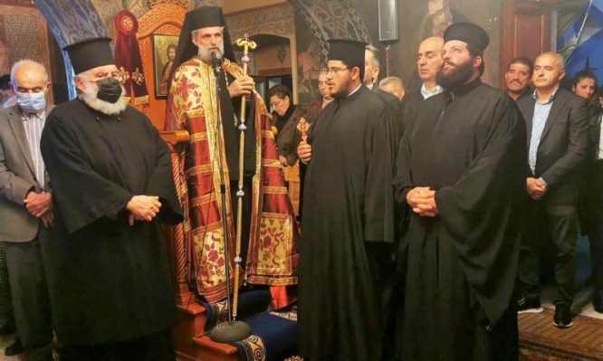 Το απόγευμα της Τετάρτης 8 Μαρτίου 2023, ετελέσθη Αρχιερατικός Εσπερινός μετ’ αρτοκλασίας, επί τη μνήμη των Αγίων Τεσσαράκοντα Μαρτύρων των εν πόλει Σεβαστεία μαρτυρησάντων, χοροστατούντος του Θεοφιλεστάτου Επισκόπου Στρατονικείας κ. Στεφάνου, συμπαραστατουμένου υπό του εφημερίου του πανηγυρίζοντος Ιερού Ναού π. Σεβαστιανού Καζηλιέρη και ιερέων της νήσου.