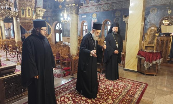 Την Παρασκευή 30 Ιανουαρίου 2026, εορτή της Συνάξεως των Αγίων Τριών Ιεραρχών, Μεγάλου Βασιλείου, Γρηγορίου του Θεολόγου και Ιωάννου του Χρυσοστόμου, ο Σεβασμιώτατος Μητροπολίτης μας κ. Τιμόθεος μετέβη στα Φάρσαλα, όπου χοροστάτησε στην ακολουθία του Όρθρου και τέλεσε τη Θεία Λειτουργία στον Ιερό Ναό Κοιμήσεως της Θεοτόκου.   Οι πιστοί της περιοχής προσήλθαν για να τιμήσουν […]