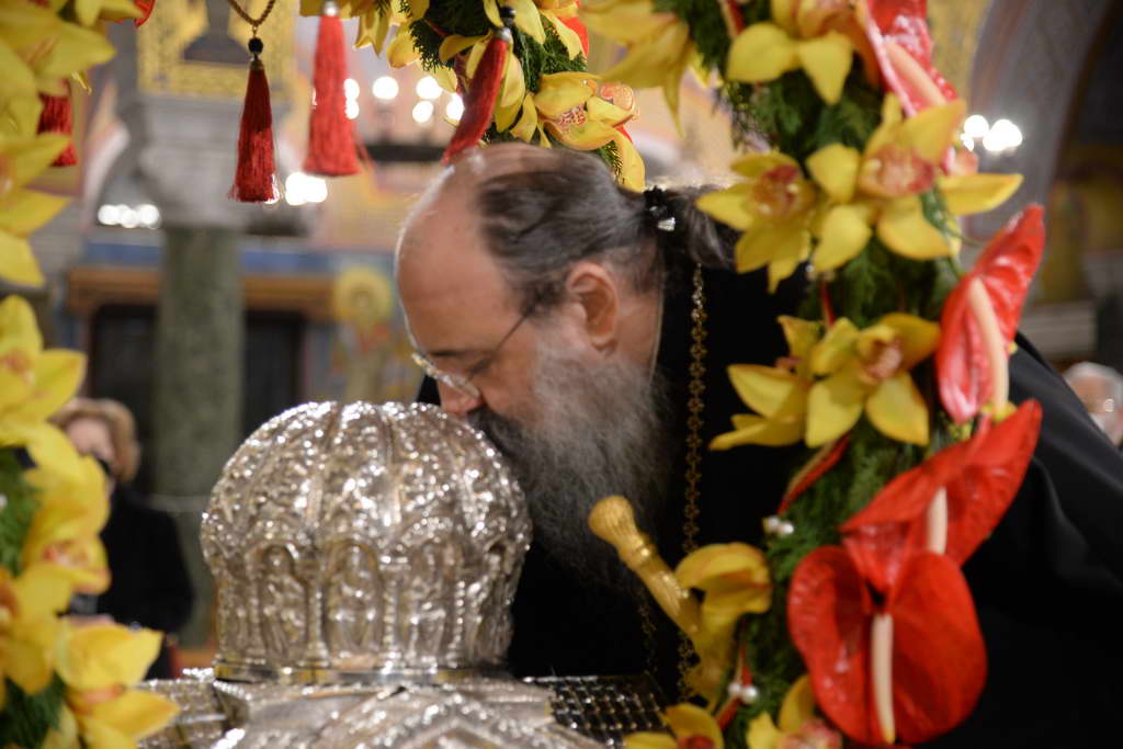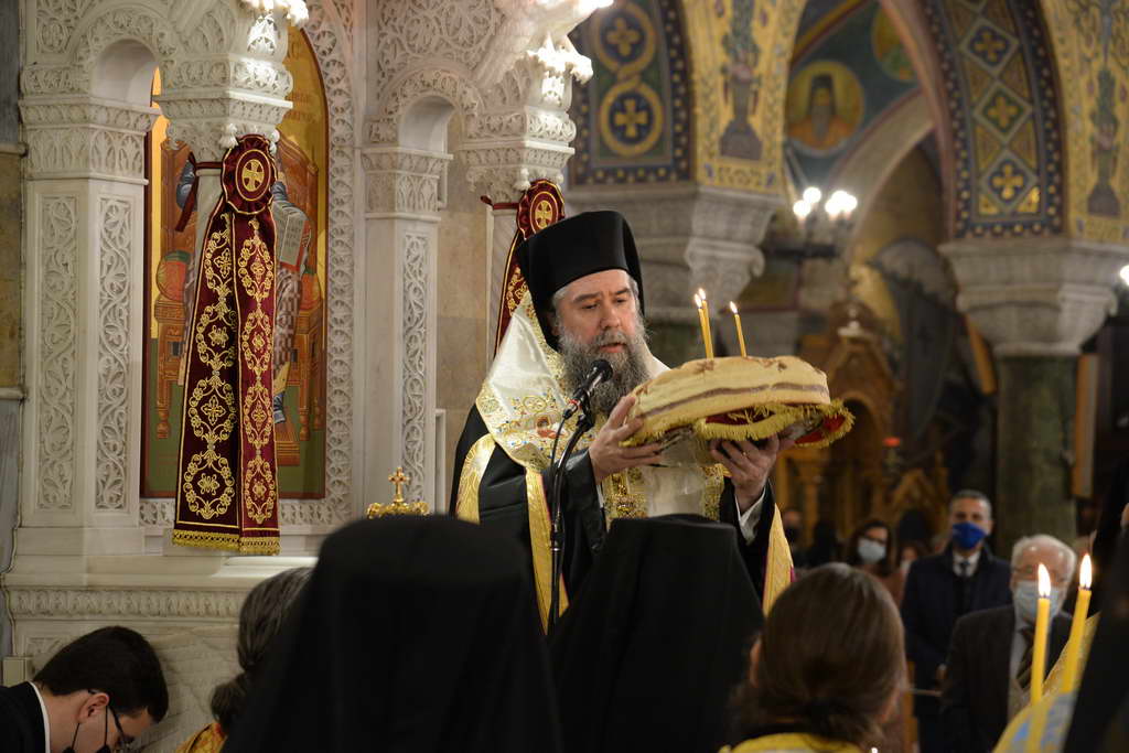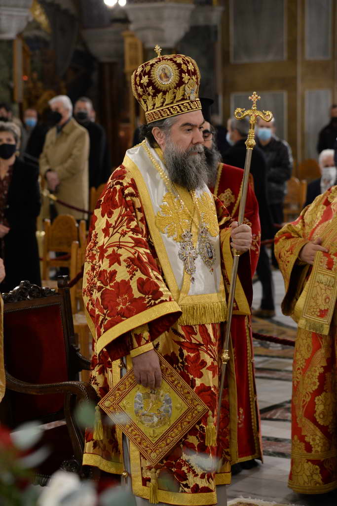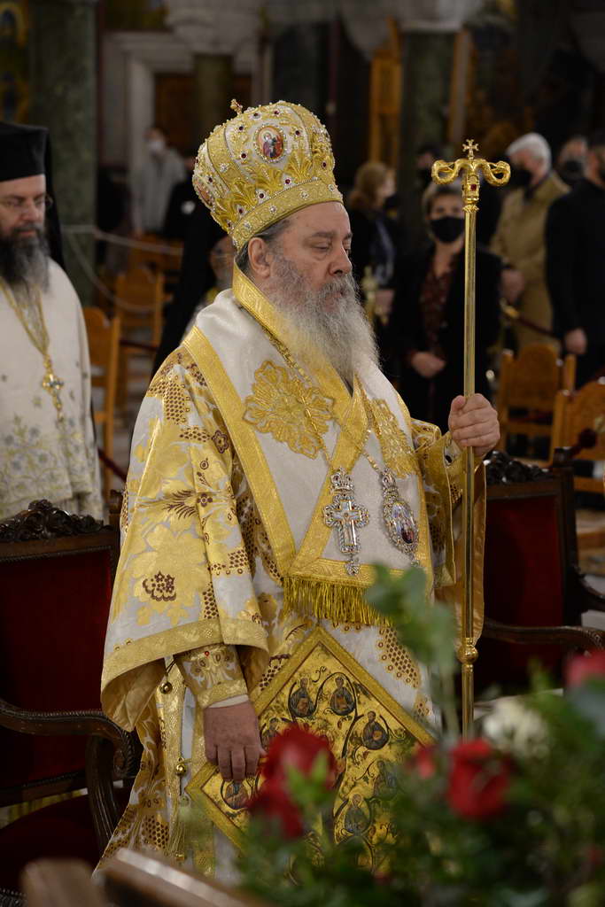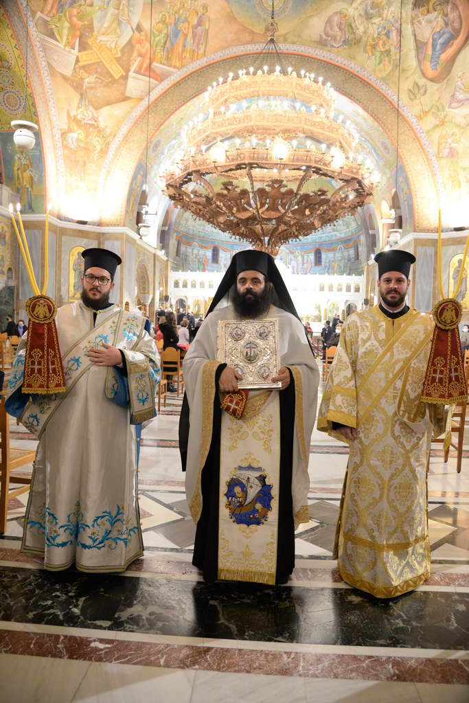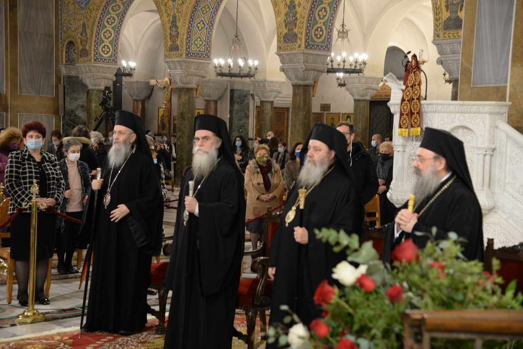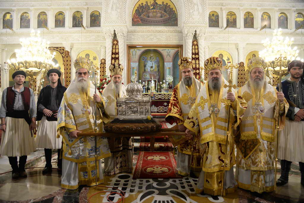 Συλλειτούργησαν οι Σεβασμιώτατοι Μητροπολίτες Σερρών και Νιγρίτης κ. Θεολόγος, Άρτης κ. Καλλίνικος, Πατρών κ. Χρυσόστομος καί ο Θεοφιλέστατος Επίσκοπος Κερνίτσης κ. Χρύσανθος.