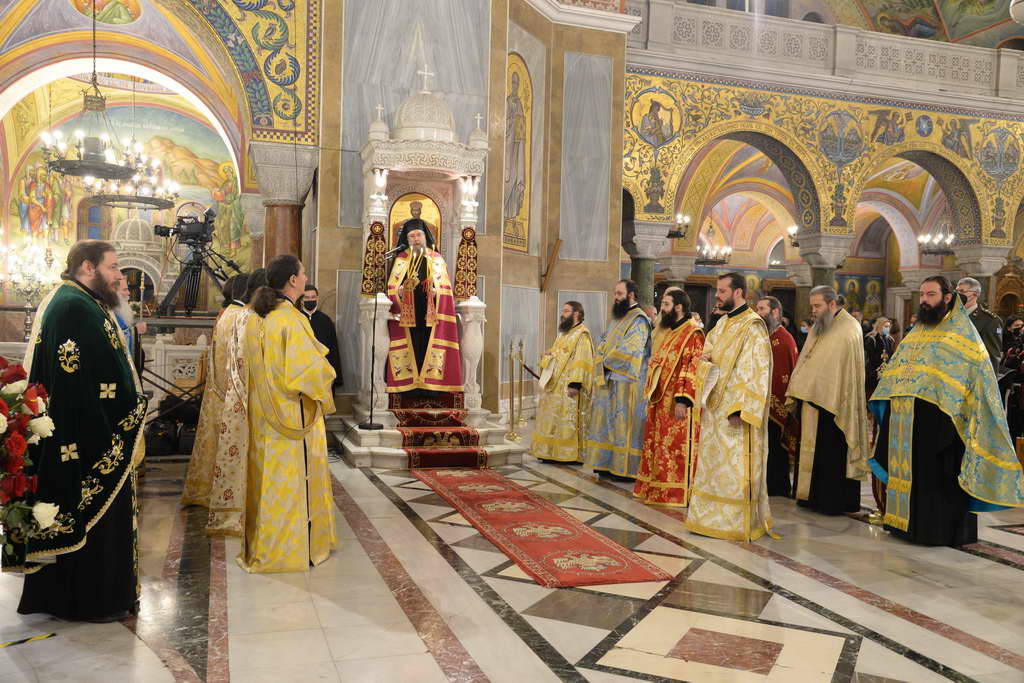 Έκλεισε δε με ευχαριστίες προς τους Σεβασμιωτάτους Αρχιερείς, που συμμετείχαν στους λαμπρούς εορτασμούς και προς όλους όσοι συνέβαλαν στην επιτυχία των εορταστικών εκδηλώσεων καθ’ όλας τας ημέρας προς τιμήν του Αγίου Αποστόλου Ανδρέου.