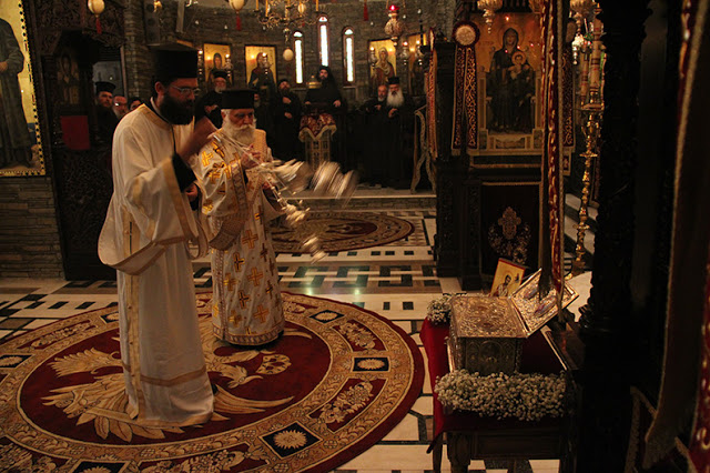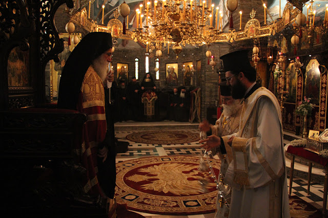 Τον Σεβασμιώτατο, ευχαρίστησε για την προσφορά της αναιμάκτου Θυσίας αλλά και την χειροτονία του πνευματικού του τέκνου π. Αθανασίου, ο Πρωτοσύγγελλος του και Καθηγούμενος της εορτάζουσας Μονής Αρχιμανδρίτης Νεκτάριος Μουλατσιώτης.