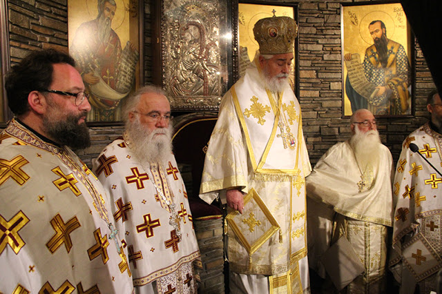 Ο Μητροπολίτης μας, πριν το τέλος της Θείας Λειτουργίας μιλώντας προς τους προσελθόντες πιστούς, τους προσκάλεσε να μένουν ενωμένοι με τον Χριστό και είπε πως αυτό επιτυγχάνεται με το να προσεύχονται και να μετέχουν συχνά στα Ιερά Μυστήρια. Απευθυνόμενος προς τον νεοχειροτονηθέντα κληρικό και παραδίδοντας του, το Ιερατικό και ένα Ιερό Αντιμήνσιο για να τελεί με αυτά την Θεία Λειτουργία, τον παρότρυνε να είναι πάντοτε προσεδρεύων στο Ιερό Θυσιαστήριο με φόβο Θεού και αγάπη για τον λαό Του. Τέλος, ευχήθηκε για την ονοματική εορτή τους, στην εορτάζουσα Καθηγουμένη της Ιεράς Μονής Αγίων Νεκταρίου και Φανουρίου Μοναχή Μόνικα και τον αδελφό και συνκτήτορα της μονής Αγίων Αυγουστίνου και Σεραφείμ και Αρχιερατικό του επίτροπο στην περιφέρεια Ευπαλίου και Ποτιδανείας, Αρχιμανδρίτη Αυγουστίνο Σύρο.