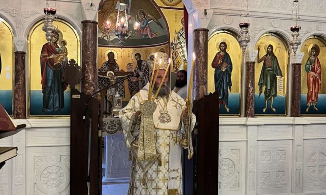 Αρχιερατική Θεία Λειτουργία τελέστηκε την Παρασκευή 20 Σεπτεμβρίου 2024 στον Ιερό Ναό του Αγίου Παϊσίου του Αγιορείτου πόλεως Ιωαννίνων επί τη μνήμη του Αγίου Ενδόξου Μεγαλομάρτυρος Ευσταθίου του Πλακίδα. Του Όρθρου χοροστάτησε και πεοεξήρχε της Θείας Λειτουργίας ο Σεβασμιότατος Μητροπολίτης Ιωαννίνων κ.κ. Μάξιμος. Το απόγευμα της ιδίας ο Σεβασμιώτατος ποιμενάρχης μας χοροστάτησε στον Εσπερινό της Αποδόσεως της Εορτής του Τιμίου Σταυρού και της Παρακλήσεως προς την ιερά Εικόνα της Παναγίας της Τριχερούσης που αντίγραφο Της θησαυρίζεται στον ως άνω Ιερό Ναό.