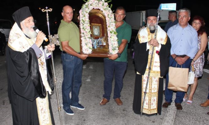 Μετά το πέρας του εσπερινού πραγματοποιήθηκε η κατ’ έθος λιτάνευσις της Ιεράς Εικόνος του Αγίου Φανουρίου, εις τον αύλειο χώρο του Ιερού Ναού και στην κεντρική πλατεία του οικισμού του Ξηροκάμπου.