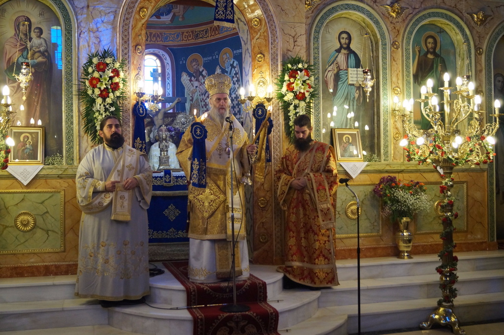 Ἀνήμερα, ἐτελέσθη Ἀρχιερατικό Συλλείτουργο, προεξάρχοντος τοῦ Σεβασμιωτάτου Μητροπολίτου Φιλαδελφείας κ. Μελίτωνος, τοῦ Οἰκουμενικοῦ Πατριαρχείου, συλλειτουργούντων τῶν Σεβασμιωτάτων Μητροπολιτῶν: Ναυπάκτου καί Ἁγίου Βλασίου κ. Ἱεροθέου, Πατρῶν κ. Χρυσοστόμου καί τοῦ Θεοφιλεστάτου Ἐπισκόπου Κερνίτσης κ. Χρυσάνθου.