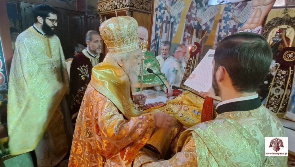 Ειδικότερα, στην ακολουθία του Όρθρου, στην ευλόγηση των άρτων και στην πανηγυρική Θεία Λειτουργία προεξήρχε ο Σεβασμιώτατος Μητροπολίτης μας κ. Ευστάθιος συνεπικουρούμενος από πλειάδα κληρικών από την ευρύτερη περιοχή.