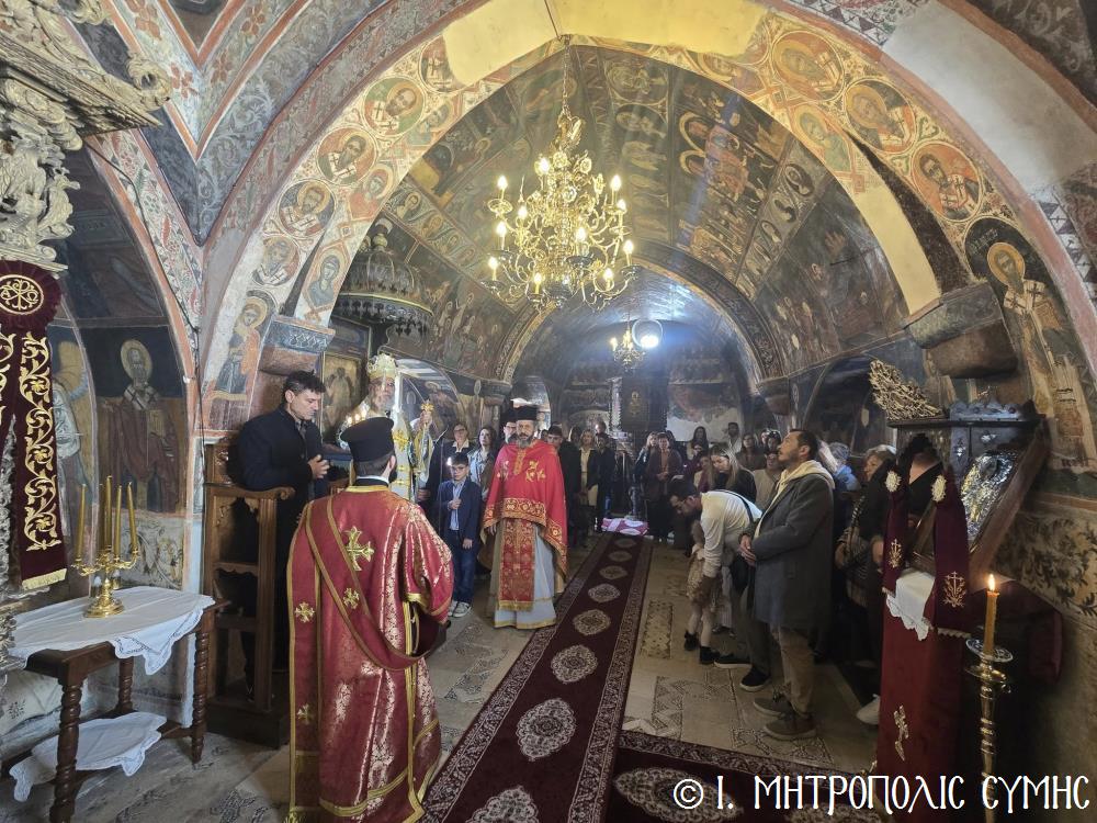 Κυριακή 16η Νοεμβρίου 2025, ὁ Σεβ. Μητροπολίτης μας κ. Χρυσόστομος, σύμφωνα μέ τό ἀνακοινωθέν πρόγραμμά του, χοροστάτησε στόν Ὄρθρο καί τέλεσε τήν Θ. Λειτουργία στήν πρότριτα πανηγυρίζουσα Ἱ. Μονή τοῦ Ταξιάρχου Μιχαήλ τοῦ Ρουκουνιώτου Σύμης, μέ συλλειτουργούς του τόν Ἱεροεπιστάτη αὐτῆς καί Γεν. Ἀρχιερατικό Ἐπίτροπο Πρωτοπρ. π. Στέφανο Μακρῆ, τόν π. Ἀντώνιο Μανιᾶ, ὡς καὶ τόν Ἱεροδιάκονό μας π. Παῦλο Τερεζάκη. Τό ἱ. ἀναλόγιο διακόνησαν οἱ καλλικέλαδοι Ἱεροψάλτες κ. Δημοσθένης καί Μερκούριος Γιανναράς, ἐνῶ μεταξύ τῶν πολυαρίθμων πιστῶν, ἐκκλησιάστηκαν ὁ Δήμαρχος Σύμης κ. Ἐλευθέριος Παπακαλοδούκας καί ὁ Διοικητής Δ.Α.Ν. Σύμης Συνταγματάρχης κ. Χαράλαμπος Κατηφόρης.