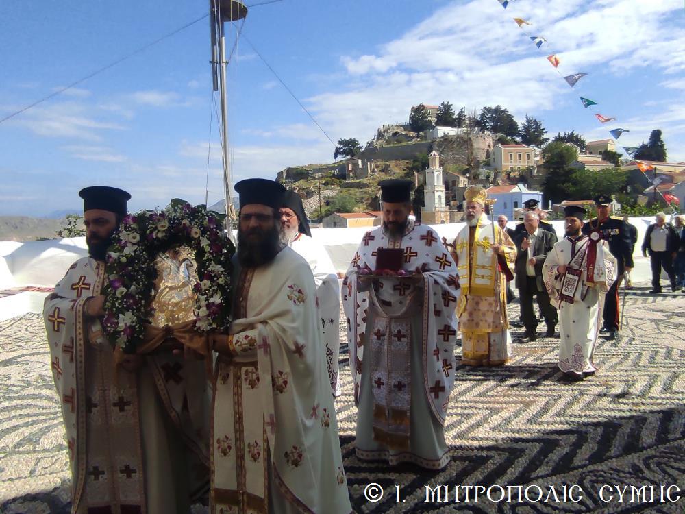 Τό διήμερον 22α καί 23η τρ. μ. Ἀπριλίου 2023 ἐντός τοῦ Πασχαλίου εὐφροσύνου κλίματος, ἑορτάστηκε σεμνοπρεπῶς καί στήν Σύμη, ἡ ἱερά μνήμη ἑνός ἐκ τῶν πλέον ἐνδοξοτέρων καί λαοφιλεστέρων Ἁγίων τῆς Ὀρθόδοξου Ἐκκλησίας μας, τοῦ Ἁγίου μεγαλομάρτυρος Γεωργίου τοῦ Τροπαιοφόρου. Ἡ πατρογονική εὐσέβεια τῶν Συμαίων ἐπέδειξε ἀπ’ αἰώνων μεγάλη εὐλάβεια στόν δημοφιλῆ αὐτόν Ἅγιο καί θεμελίωσε πρός τιμήν του ὀκτώ (!) Ναούς στό νησί, δύο ἐνοριακούς καί πέντε ἐξωκκλήσια.
