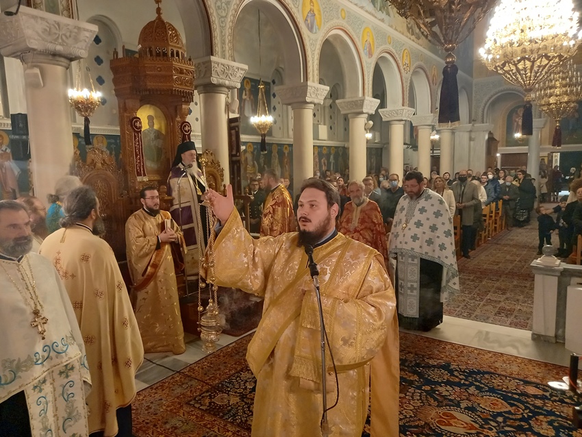 Τον Ιερό Άμβωνα διηκόνησε, κατ’ εντολή του Ποιμενάρχου μας, ο Ιεροκήρυκας της Ι. Μητροπόλεως και Ηγούμενος της Ι. Μονής Παναγίας «Η ΠΑΝΤΩΝ ΧΑΡΑ» Πανοσ. Αρχιμ. π. Άνθιμος Παπαλεξόπουλος, ο οποίος αναφέρθηκε στον συναξαριστή του Άγιου Νικολάου και στην μεγάλη αρετή της ελεημοσύνης. Επεσήμανε δε ότι σ’ αυτό το μεγάλο έργο της ελεημοσύνης και της φιλανθρωπίας η Ι. Μητρόπολή μας είναι πρωτοπόρος και φωτεινό παράδειγμα πανελληνίως. Γι’ αυτό ο Έρανος της Αγάπης, που διεξάγεται από την Ι. Μητρόπολή ετησίως αυτή την περίοδο, πριν από τις Άγιες Ημέρες των Χριστουγέννων και έχει αποκλειστικό σκοπό την ενίσχυση των εμπεριστάτων αδελφών μας που έχουν την ανάγκη μας, πρέπει να τύχει της αγάπης, της φροντίδας και της υποστήριξης όλων μας.