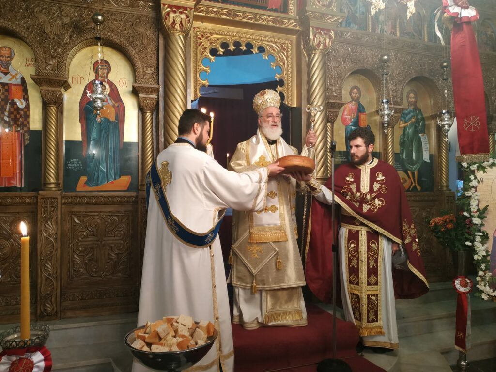 Προ της απολύσεως ο Σεβασμιώτατος ευλόγησε τους προσφερόμενους άρτους, κήρυξε κατάλληλα τον θείο λόγο αναφερόμενος στη ζωή και τα χαρίσματα του Αγίου Νικολάου