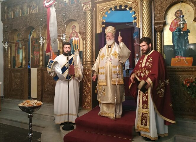 Της Αρχιερατικής Θείας Λειτουργίας προεξήρχε ο Σεβ. Ποιμενάρχης μας κ. Ανδρέας πλαισιωμένος από τον εφημέριο της Ενορίας, Πρεσβύτερο Σταύρο Φανουράκη και τον διάκονο Μαρίνο Δασκαλάκη. Το ψαλτήριο διακόνησε ο Οικονόμος Ιωάννης Καπελλάκης και ο αναγνώστης Παναγιώτης Μουστακάκης. Προ της απολύσεως ο Σεβασμιώτατος ευλόγησε τους προσφερόμενους άρτους, κήρυξε κατάλληλα τον θείο λόγο αναφερόμενος στη ζωή και τα χαρίσματα του Αγίου Νικολάου, υπογραμμίζοντας την πίστη, την ταπείνωση, την πραότητα και την αγάπη προς τον Θεό. Τέλος ευχαρίστησε το εκκλησίασμα για την παρουσία του και ευχήθηκε χρόνια πολλά και ευλογημένα.