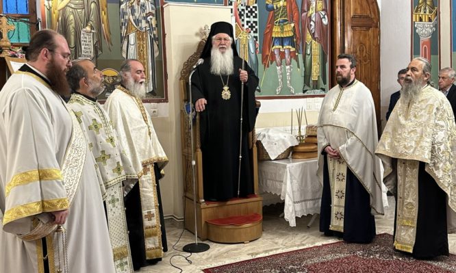 Το εσπέρας της Τρίτης 9 Μαίου 2023 ο Σεβασμιώτατος Ποιμενάρχης Θηβών κ. Γεώργιος χοροστάτησε στον Εσπερινό στον Ιερό Ναό του Αγίου Νικολάου του εν Βουνένοις στον Ελικώνα (Ζερίκι), στον οποίο συμμετείχαν πολλοί πιστοί. Ο Σεβασμιώτατος μίλησε στους πιστούς για το βίο του Αγίου Νικολάου, τον οποίο εορτάζουμε μέσα στην αναστάσιμη περίοδο του Πεντηκοσταρίου. Και ανέφερε ότι όπως οι Απόστολοι δεν μπορούσαν να κρύψουν αυτά που είδαν και άκουσαν και έγιναν κήρυκες στην οικουμένη της Ανάστασης του Χριστού, έτσι και ο Άγιος Νικόλαος με την πίστη του στο Θεό και το μαρτύριο του έγινε κήρυκας της Ανάστασης του Χριστού. Μετά τον Εσπερινό ακολούθησε η λιτάνευση της εικόνας του Αγίου.