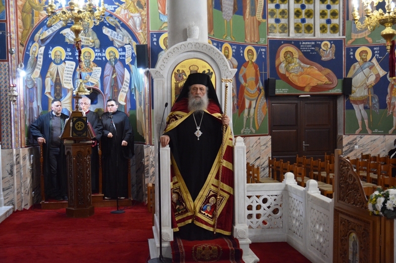 Τον θείο λόγο κήρυξε ο Ιεροκήρυξ της Ιεράς Μητροπόλεως Αρχιμ. Αρσένιος Μελισιανός. Στο τέλος της Ιεράς Ακολουθίας, προ του Ιερού Λειψάνου και του Επιτραχηλίου του Αγίου, εψάλησαν τα Εγκώμια του τιμωμένου. Προ του «Δι’ ευχών» ο Σεβασμιώτατος απηύθυνε ευχές και ακολούθησε Ιερά αγρυπνία