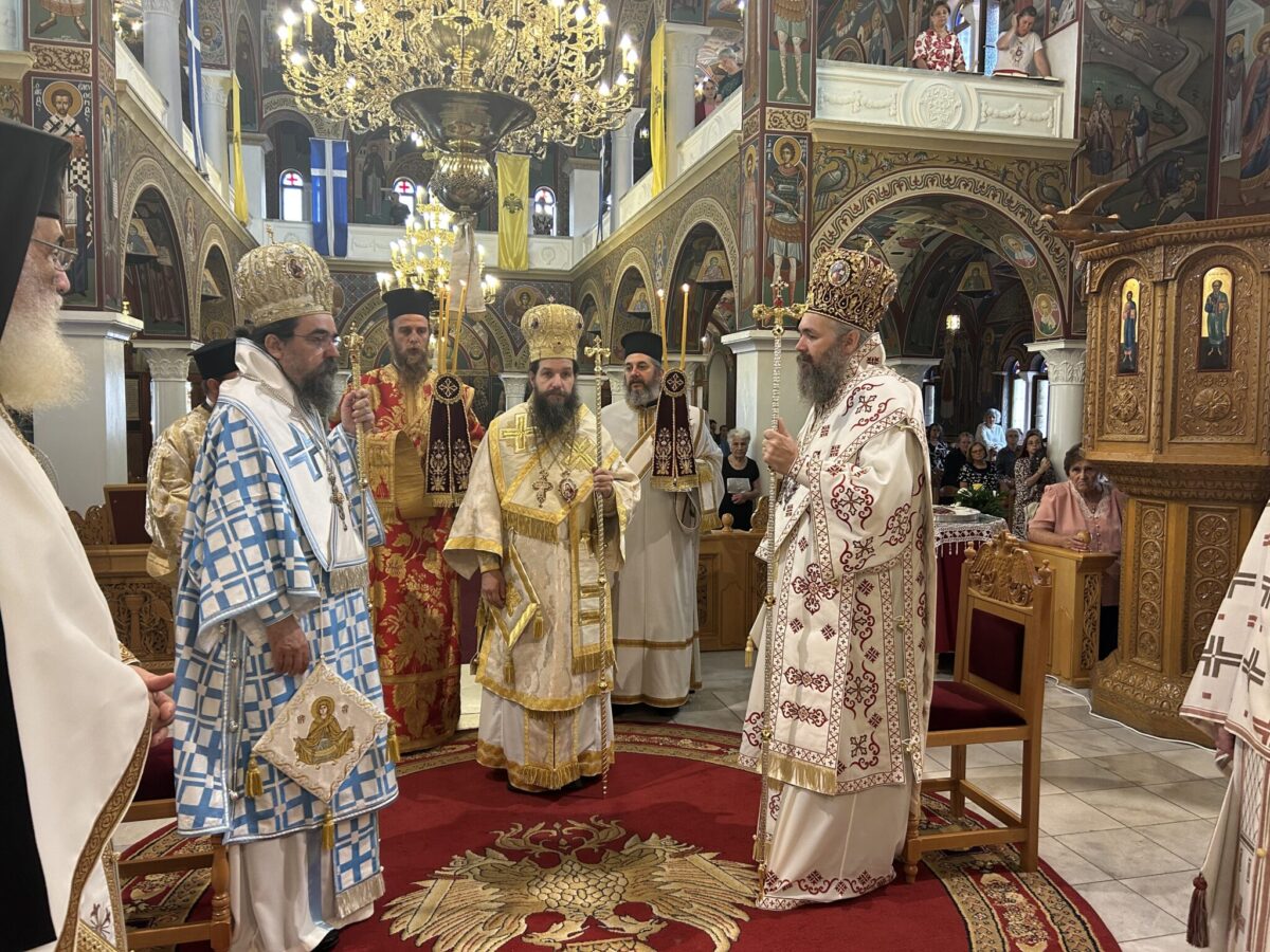 Πριν το τέλος της Θείας Λειτουργίας, ο Σεβασμιώτατος Ποιμενάρχης μας κ. Ειρηναίος, ευχαρίστησε τους Αγίους Αρχιερείς για την παρουσία τους στην εορτή του Πολιούχου.