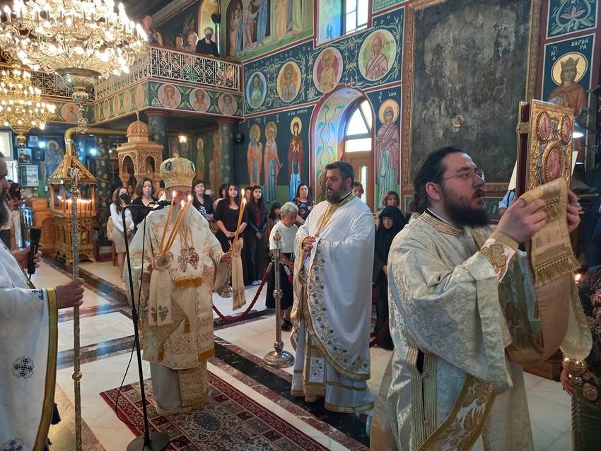 Στο κήρυγμά του ο Σεβασμιώτατος επεσήμανε ότι, αφού ο Κύριος Αναλήφθηκε στους ουρανούς με την ανθρώπινη φύση, έπεμψε τον Παράκλητο, το Άγιο Πνεύμα, προκειμένου να διατηρηθεί η παρουσία Του στον κόσμο και να κατευθύνει τον άνθρωπο εις πάσαν την αλήθειαν. Με την κάθοδο του Αγίου Πνεύματος ο Κύριος άνοιξε τις πύλες του Παραδείσου, ώστε να μπορεί ο άνθρωπος, εφόσον Τον πιστεύει και Τον ακολουθεί να εισέρχεται και να μένει μαζί με τον Θεό.