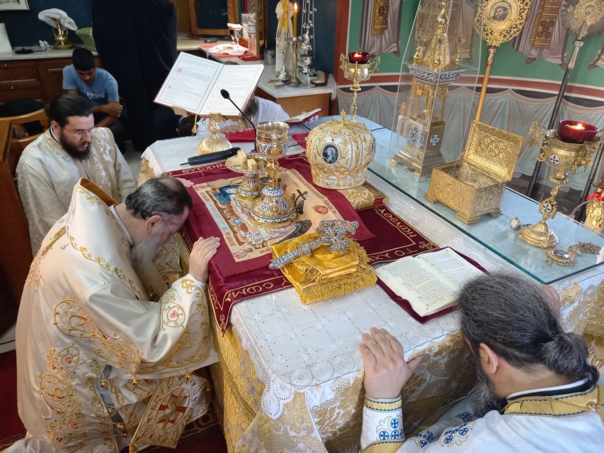Στο κήρυγμα του ο Σεβασμιώτατος ανέλυσε το Αποστολικό ανάγνωσμα της ημέρας τονίζοντας ότι η Εκκλησία μας δεν είναι κάτι απλό που δημιουργήθηκε προκειμένου να επηρεάζει ως θεσμός τα κοσμικά θέματα. Η Εκκλησία είναι το Σώμα του Χριστού, είναι η δωρεά του Χριστού που κάνει τον άνθρωπο που πιστεύει στην Ανάσταση και την διδασκαλία Του, αθάνατο. Αυτή η επιλογή του Χριστιανικού τρόπου ζωής φαίνεται απλή αλλά όποιος την ακολουθήσει οφείλει να μην παλινδρομεί γιατί όπως λέει το Ι. Ευαγγέλιο «Οὐδεὶς δύναται δυσὶκυρίοιςδουλεύειν· ἢ γὰρτὸνἕνα μισήσει καὶτὸνἕτερονἀγαπήσει, ἢ ἑνὸςἀνθέξεταικαὶ τοῦ ἑτέρου καταφρονήσει. οὐ δύνασθε Θεῷδουλεύεινκαὶμαμωνᾷ» (Ματθ. στ΄, 24). Ως Χριστιανοί οφείλουμε να είμαστε παιδιά του φωτός εμφορούμενοι από το Άγιο Πνεύμα γεμάτοι καλοσύνη, δικαιοσύνη και αλήθεια. Οφείλουμε ακόμα να μην είμαστε συγκοινωνοί σε αμαρτωλά και σκοτεινά έργα αλλά να τα ελέγχουμε,ώστε να βγαίνουν στο φώς αποδεικνύοντας το πόσο ολέθρια είναι. Πρέπει να προσέχουμε το πώς συμπεριφερόμαστε, να έχουμε σοφία και σύνεση και να εξαγοράζουμε τον καιρό με έργα που ακολουθούν το θέλημα του Θεούευχαριστώντας Τον όχι μόνο για τα ευχάριστά αλλά και για τα δυσάρεστα.