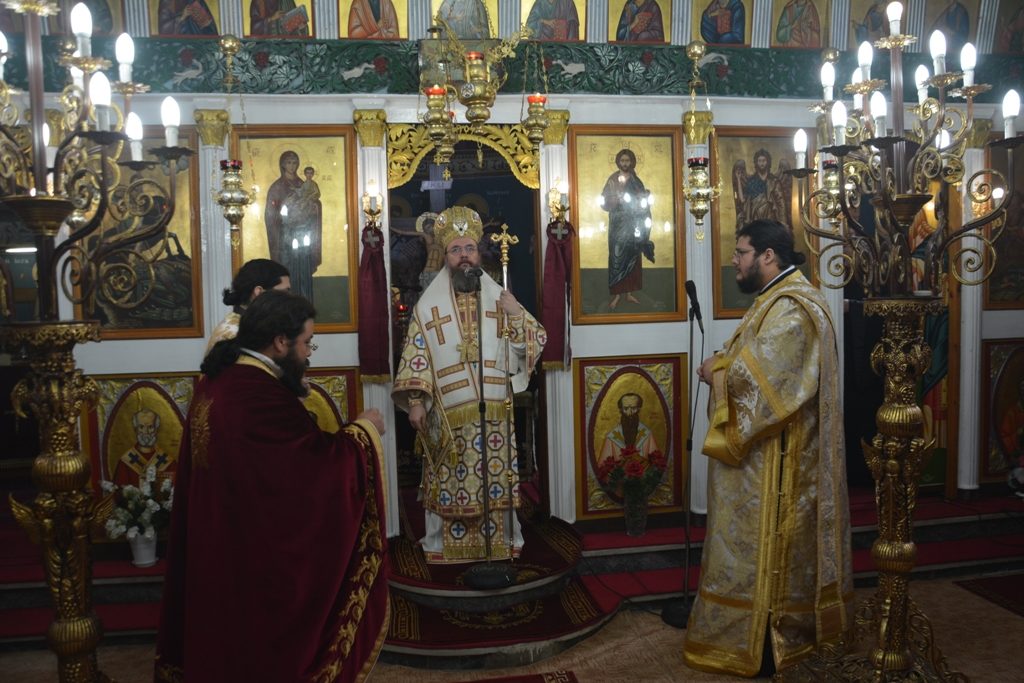 Στην Ακολουθία του Όρθρου χοροστάτησε ο Σεβασμιώτατος Μητροπολίτης Αιτωλίας και Ακαρνανίας κ. Δαμασκηνός, ο οποίος προεξήρχε και στην Αρχιερατική Θεία Λειτουργία, συμπαραστατούμενος από τον Προϊστάμενο της Ενορίας π. Άγγελο Παναγιωτίδη και τους διακόνους π. Στέφανο Καππέ και π. Αμβρόσιο Καλλιάφα.