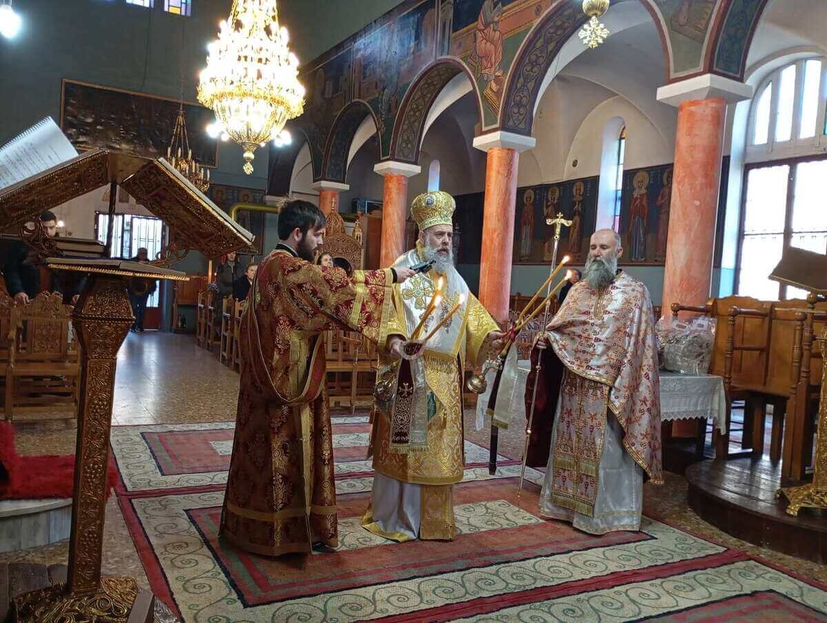 Ο Σεβασμιώτατος Μητροπολίτης κ. Τιμόθεος, το Σάββατο 1 Φεβρουαρίου 2025, επί τη ιερά μνήμη του αγίου, ενδόξου και καλλινίκου μάρτυρος Τρύφωνος, προέστη της Θείας Λειτουργίας στον Ιερό Ναό Γενεσίου της Θεοτόκου Τ.Κ. Καστανέας. Στον ως άνω Ιερό Ναό φυλάσσεται η τιμία κάρα του Αγίου μάρτυρος Τρύφωνος.
