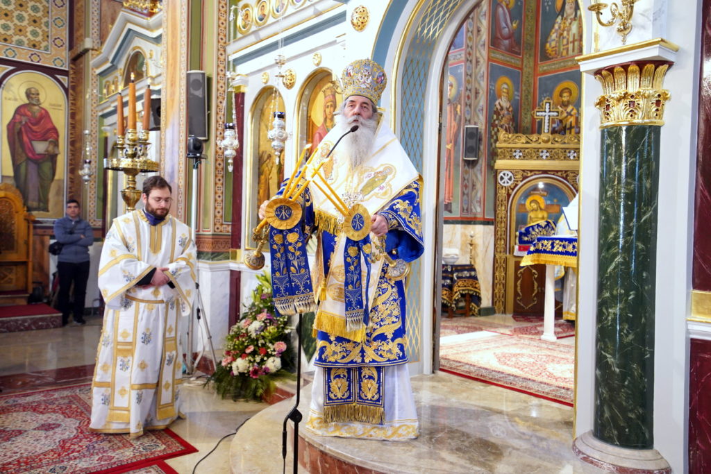Σήμερα Σάββατο 25 Μαρτίου 2023 το πρωί τελέστηκε πανηγυρική Αρχιερατική Θεία Λειτουργία, Ιερουργούντος του Σεβασμιωτάτου Μητροπολίτου Πειραιώς κ.Σεραφείμ. Μετά το κοινωνικό ο Πρωτοσύγκελλος της Ιεράς Μητροπόλεως Πειραιώς Αρχιμανδρίτης Νήφων Καπογιάννης, ανέγνωσε το μήνυμα του Σεβασμιωτάτου για την μεγάλη εορτή του Ευαγγελισμού της Υπεραγίας Θεοτόκου.