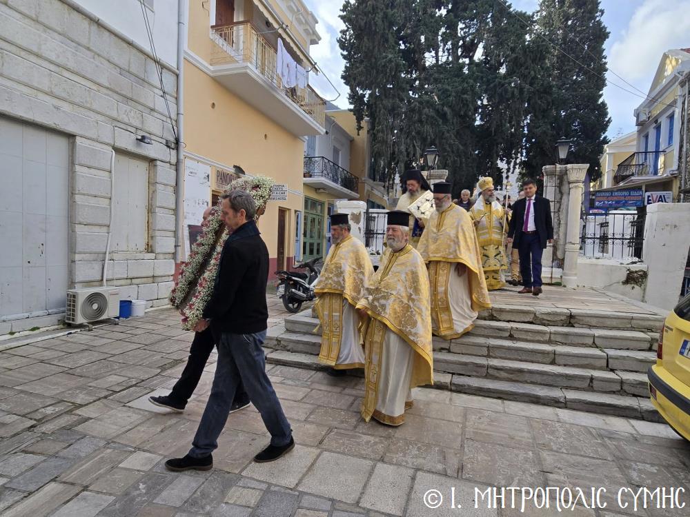 Πρό τῆς Ἀπολύσεως ἐπραγματοποιήθη ἡ λιτανεία τῆς ἱ. Εἰκόνος τοῦ Τιμίου Προδρόμου εἰς τάς παρακειμένας ὁδούς τοῦ Ἱ. Ναοῦ, ἐνῶ πρό τοῦ Δημαρχιακοῦ, τοῦ Μητροπολιτικοῦ Μεγάρου, ὡς καί τῆς Λέσχης Ἀξιωματικῶν τῶν Ἐνόπλων Δυνάμεων ἀνεπέμφθη Δέησις. Μεταξύ τῶν πιστῶν, παρέστησαν ὁ Δήμαρχος Σύμης κ. Ἐλευθέριος Παπακαλοδούκας, ὁ Ἀντιδήμαρχος κ. Νικήτας Γρύλλης καί Μέλη τοῦ Δημοτικοῦ Συμβουλίου, ὡς καί ἐκπρόσωποι τῶν λοιπῶν τοπικῶν Στρατιωτικῶν, Ἀστυνομικῶν καί Λιμενικῶν Ἀρχῶν, Φορέων καί Συλλόγων.