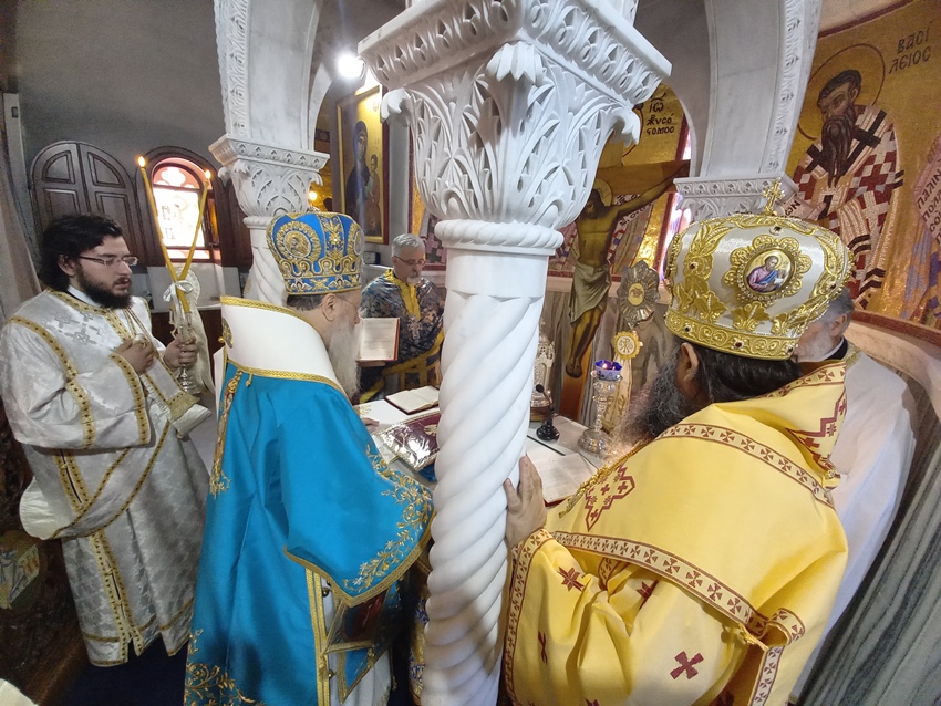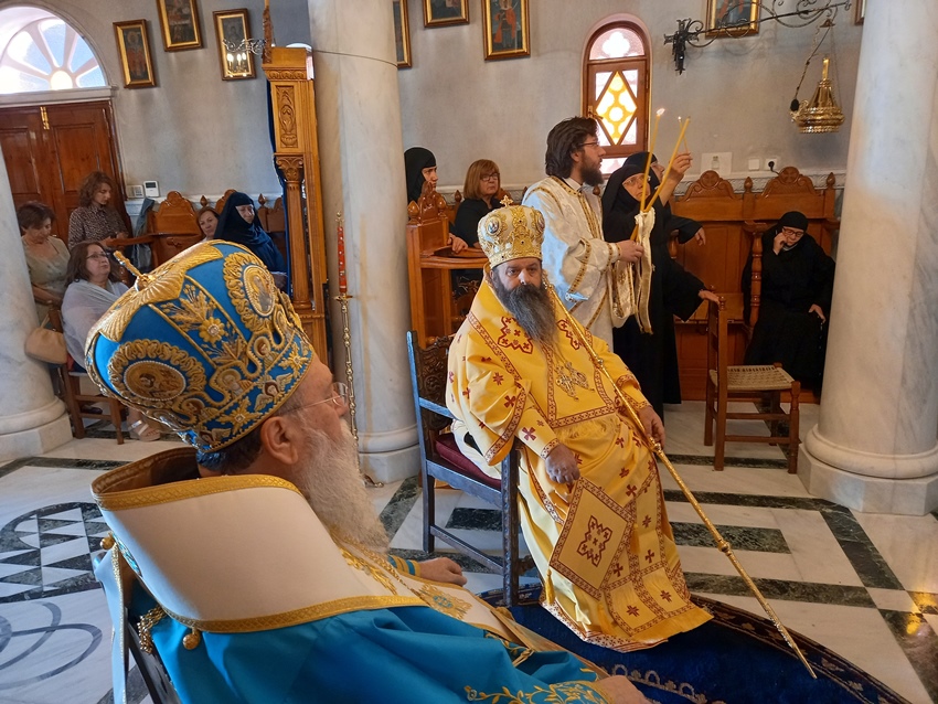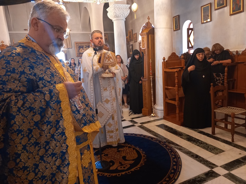 Την επομένη, ανήμερα της Εορτής, και στο ως άνω Ι. Μετόχιο τελέσθηκε Δισαρχιερατική Θ. Λειτουργία, από τον Σεβ. Μητροπολίτη Κορίνθου κ. Διονύσιο και τον Θεοφ. Επίσκοπο Κεγχρεών κ. Αγάπιο, πλαισιουμένων υπό του Πανοσ. Αρχιμ π. Αρκαδίου Ραζνύ, του Πρωτ/ρουπ. Μιχαήλ Γιαννάτου, εκ της Ι. Αρχιεπισκοπής Αθηνών, του Πρωτ/ροπ. ΔημητρίουΦουρλεμάδη και των Διακόνων π. Δαμασκηνού Γεννηματά και π. Χρήστου Χίλια, ενώ το ΙεροψαλτικόΑναλόγιο εκόσμησε,τόσο στον Εσπερινό όσο και στην Θ. Λειτουργία, ο κ. Ανάργυρος Σφήκας.