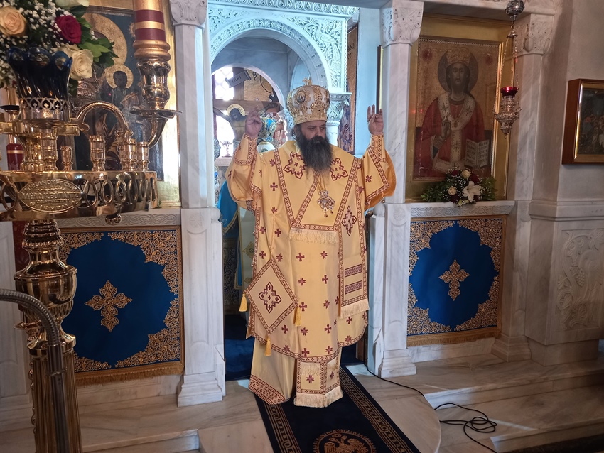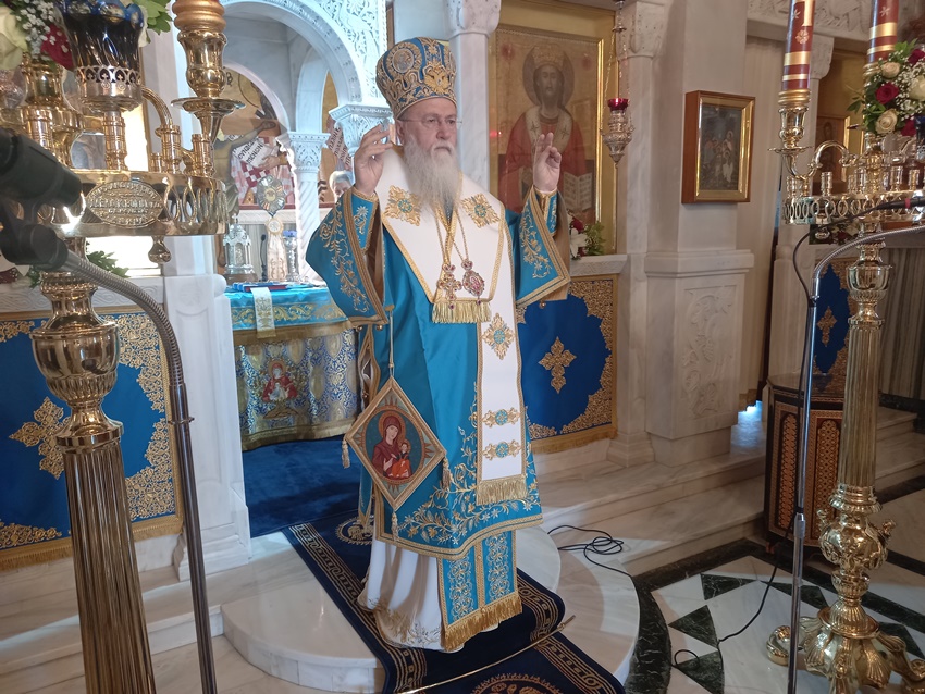 Πριν την απόλυση της Θ. Λειτουργίας ο Σεβ. Μητροπολίτης τόνισε ότι οι μνήμες των Αγίων μας αποτελούν αφορμή να πλησιάσουμε τον Θεό και να «λουστούμε» από την χάρη και το έλεος Του, ώστε ο βίος μας να είναι όσο το δυνατόν γαληνότατος, χαριέστερος και ευλογημένος. Μέσα από την ποικιλία του βίουτου κάθε Αγίου ο Θεός μαςδείχνει, κατά τον χαρακτήρα μας, από έναν δρόμο που οφείλει ο καθείς να ακολουθήσει και να φτάσει στο τέρμα του, που είναι η θέωσή του. Υπάρχουν βέβαια, κατά την πατερική ρήση, διαφορετικοί Άγιοι και ο κάθε ένας αγίασε με τον χαρακτήρα του, τις προσπάθειές του, την θέληση και τον αγώνα του και γι’ αυτό λέγεται ότι «αστήρ αστέρος διαφέρει». Δοξάζω τον Θεό, ως Ποιμενάρχης σας, που μας έδωσε αυτούς τους Αγίους, αλλά και ανθρώπους που διακονούν αυτούς τους Αγίους, ώστε να παραμένουν τα σεμνεία και τα ιερείατους, ως τόποι, που μας προσκαλούν να μας δείξουν ότι παρά την αμαρτωλότητα των ανθρώπων δεν έχουν αποϊεροποιηθεί. Η ιερότητα και αγιότητα, που παρέχεται από τον Ουρανό στην γη,είναιγια όλους τουςανθρώπους, γι’ αυτό μην παραλείπετε Χριστιανοί μου, να προσέρχεστε στους Ι. Ναούς, που τελείται η Θ. Λειτουργία και που επιτελούνται οι μνήμες των Αγίων.Μην φοβάστε να παρακολουθήσετε την διδαχή των πατέρων της Εκκλησίας που γίνεται προς ωφέλεια δική σας και να λαμβάνετε τα εξ αυτής παραδείγματα με συνέπεια και όχι με διαλείμματα. Ο κάθε Άγιος,από την χορεία των Αγίων, είναι πνευματικός δάσκαλος και η βιωτή του καθενός από εμάςαλλάκαι ο χαρακτήρας μας ταιριάζουν με τον βίο κάποιου Αγίου. Οφείλουμε λοιπόν, να ψάξουμε και κατά τα μέτρα μας να βρούμε τους Αγίους μας, να Τους επικαλούμαστε, να εκζητούμε τις πρεσβείες Τους και Αυτοί είναι βέβαιο ότι θα καταστούν ακούραστοι πρεσβευτές μας.