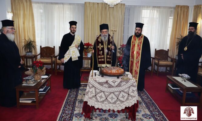 Το μεσημέρι της Τετάρτης 31 Δεκεμβρίου 2025, αμέσως μετά τα Πρωτοχρονιάτικα Κάλαντα, ο Σεβασμιώτατος Μητροπολίτης μας κ. Ευστάθιος ευλόγησε, στο Επισκοπείο, τη Βασιλόπιτα των υπηρεσιών της Ιεράς Μητροπόλεώς μας, παρουσία των κληρικών και λαϊκών συνεργατών του.