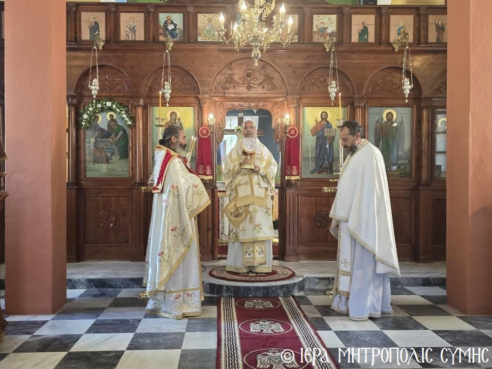 Μέ ἱεροπρέπεια καί εὐλάβεια ἑορτάσθη καί ἐφέτος στήν Σύμη ἡ ἑορτή τοῦ Γενεθλίου τῆς Ὑπεραγίας Θεοτόκου, μέ ἐπίκεντρο τόν Προσκυνηματικό Ἱ. Ναό Γενεθλίου Θεοτόκου τῆς «Πειραιώτισσας», ὅπου ὁ Σεβ. Μητροπολίτης μας κ. Χρυσόστομος χοροστάτησε στόν Ὄρθρο καί τέλεσε τήν Θεία Λειτουργία, μέ συλλειτουργούς του, τόν Ἐφημέριο τῆς Ἐνορίας Εὐαγγελισμοῦ τῆς Θεοτόκου Σύμης καί τόν Ἐφημέριο τῆς Ἐνορίας Ἁγίου Δημητρίου Σύμης π. Γεώργιο Κακακιό, ἀπόγονο τῆς οἰκογενείας τῆς Κτιτορίσσης τοῦ Ἱ. Ναοῦ. Τό δέ ἀναλόγιο διηκόνησαν οἱ Ἱεροψάλτες, κ. Πανορμίτης Κακακιός, υἱός τοῦ προαναφερθέντος Ἱερέως καί ὁ φιλοξενούμενος κ. Θεόδωρος Κορδοκούζης.