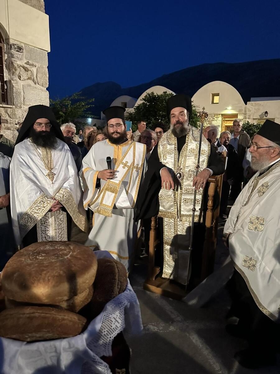 Το απόγευμα της Πέμπτης 7 Σεπεμβρίου ο Σεβασμιώτατος χοροστάτησε του Πανηγυρικού Εσπερινού πλαισιούμενος από τον καθηγούμενο της Ιεράς Μονής Προφήτου Ηλιού Θήρας π. Καλλίνικο Ρούσσο, ο οποίος κήρυξε και τον θείο λόγο, από αδελφούς της Μονής (οι οποίοι βρίσκονται στο νησί για την πανήγυρη της Μονής Παναγίας Καλαμιωτίσσης, η οποία αποτελεί Μετόχι της ως άνω κυριάρχου Μονής) καθώς και από Ιερείς της Μητροπόλεως.