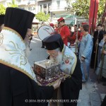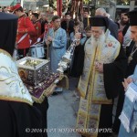 Το Ιερό λείψανο υποδέχθηκε ο Σεβασμιώτατος Μητροπολίτης Άρτης κ. Ιγνάτιος, στην πλατεία Μονοπωλίου, μετά του Κλήρου, των Αρχόντων και πολλών ευσεβών χριστιανών. Εν πομπή το άγιο προσκύνημα έφτασε στον Ιερό Ναό του Αγίου Γεωργίου όπου τελέσθηκε το Μυστήριο του Ιερού Ευχελαίου.