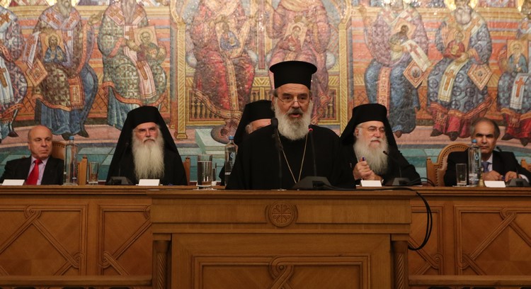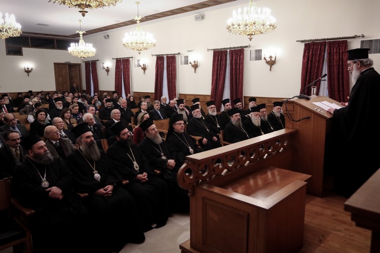 Στον χαιρετισμό του ο Αρχιεπίσκοπος ανέφερε πως «η Εκκλησία της Ελλάδος τιμά σήμερα την σεπτή μνήμη του Μεγάλου Φωτίου, προστάτη της Ιεράς ημών Συνόδου. Αναζητεί στο πρόσωπο και το έργο του έμπνευση και φωτισμό, προβάλλουσα αυτόν ωρ πρότυπο εκκλησιαστικής διακονίας».