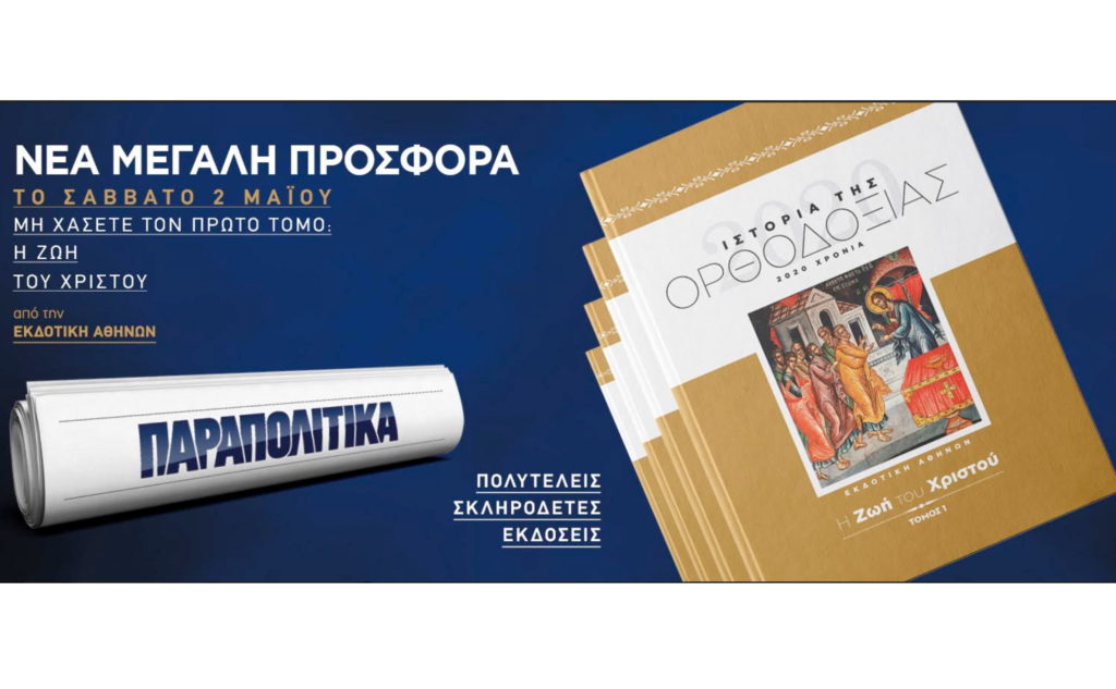Για πρώτη φορά η εφημερίδα «ΠΑΡΑΠΟΛΙΤΙΚΑ», σε συνεργασία με την Εκδοτική Αθηνών, παρουσιάζει ένα μνημειώδες έργο, που σκοπό έχει να εξάρει το διαχρονικό μεγαλείο της Ορθοδοξίας, να τιμήσει τη δόξα της πνευματικής προσφοράς της και να την καταστήσει κτήμα παιδείας για ολόκληρη τη Χριστιανοσύνη.