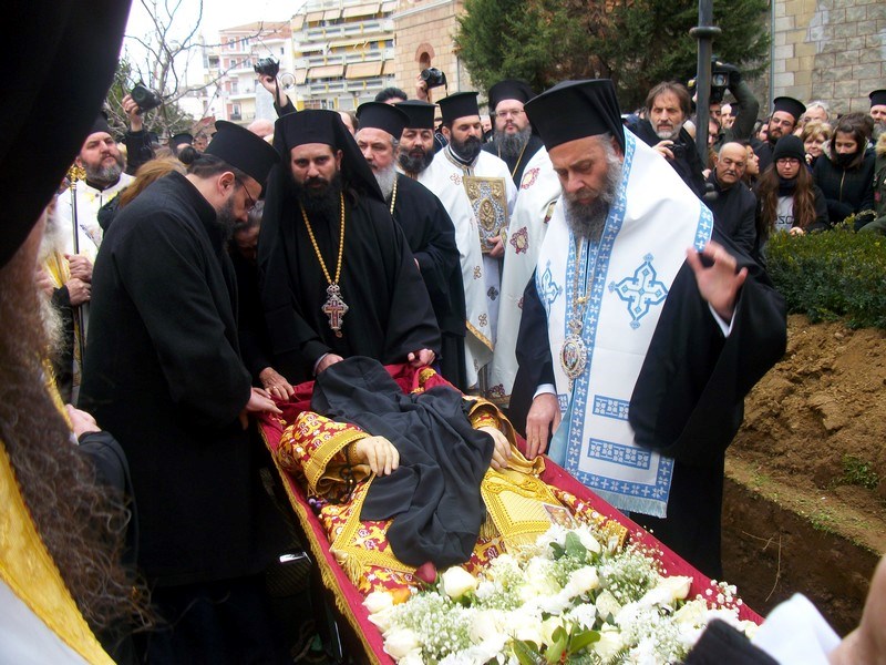 Στην εξόδιο ακολουθία προεξήρχε ο μητροπολίτης Σταγών κ. Σεραφείμ ενώ συγχοροστάτησαν οι μητροπολίτες Σπάρτης κ. Ευστάθιος, Μαντινείας κ. Αλέξανδρος, Άρτης κ. Ιγνάτιος, Αυλώνος κ. Χριστόδουλος, Βεροίας κ. Παντελεήμων, Φθιώτιδος κ. Νικόλαος, Καστορίας κ. Σεραφείμ, Φλωρίνης κ. Θεόκλητος, Κοζάνης κ. Παύλος, Κυθήρων κ. Σεραφείμ, Θηβών κ. Γεώργιος, Ελασσώνος κ. Χαρίτων, Νευροκοπίου κ. Σεραφείμ (Εκκλησία Βουλγαρίας), Θεσσαλιώτιδος κ. Τιμόθεος κι ο επίσκοπος Ρεντίνης κ. Σεραφείμ. Επίσης, παρέστη συμπροσευχόμενος ο μητροπολίτης Τρίκκης κ. Αλέξιος.