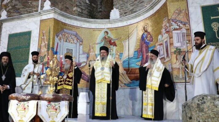 Χθες το απόγευμα, στον περικαλλή καθεδρικό ιερό ναό του Απόστολου Παύλου που εγκαινιάστηκε το 1926, πραγματοποιήθηκε πανηγυρικός εσπερινός χοροστατούντος του Μητροπολίτη Λαγκαδά, Λητής και Ρεντίνης κ. Πλάτωνα, τη συμμετοχή του οικείου Μητροπολίτη Φιλίππων, Νεαπόλεως και Θάσου κ. Στεφάνου και του Μητροπολίτη Λαρίσης και Τυρνάβου κ. Ιερώνυμου. Ακολούθησε λιτάνευση της ιεράς εικόνας του πολιούχου στους κεντρικούς δρόμους της πόλης. Η πομπή κατέληξε στην παραλία και στο μνημείο αποβίβασης του Απόστολου Παύλου στο λιμάνι της αρχαίας Νεάπολης, όπου πραγματοποιήθηκε αρτοκλασία.