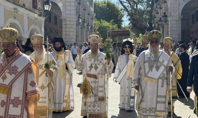 Με την καθιερωμένη μεγαλοπρέπεια της κερκυραϊκής παράδοσης λιτανεύτηκε το πρωί της Δευτέρας 11 Αυγούστου 2025 το ιερό σκήνωμα του Αγίου και θαυματουργού Σπυρίδωνος. στα πλαίσια των εκδηλώσεων για την ανάμνηση του θαύματος διάσωσης της Κέρκυρας από την πολιορκία των Οθωμανών Τούρκων στις 11 Αυγούστου 1716 χάρις στην θαυματουργή παρέμβαση του αγίου Σπυρίδωνος. Στην λιτάνευση συμμετείχαν ο Σεβασμιώτατος Μητροπολίτης Λευκάδος και Ιθάκης κ. Θεόφιλος, ο Σεβασμιώτατος Μητροπολίτης Ζακύνθου και Στροφάδων κ. Διονύσιος, ο Σεβασμιώτατος Μητροπολίτης Θεσσαλιώτιδος και Φαναριοφερσάλων κ. Τιμόθεος, ο Θεοφιλέστατος επίσκοπος Κοτυαίου κ. Διονύσιος, βοηθός του Μητροπολίτη Ιταλίας, και ο οικείος ποιμενάρχης Σεβασμιώτατος Μητροπολίτης Κερκύρας, Παξών και Διαποντίων Νήσων κ. Νεκτάριος. Πλήθος κόσμου ακολούθησε τον Άγιο και προσευχήθηκε κατά την λιτάνευση του σκηνώματός του. Παρόντες ήταν ο περιφερειάρχης Ιονίων Νήσων κ. Τρεπεκλής, οι βουλευτές του Νομού κ.κ. Αυλωνίτης και Μπιάγκης, ο βουλευτής Δυτικού τομέα Αθήνας της ΝΙΚΗΣ κ. Ανδρέας Βορύλλας , ο δήμαρχος Κεντρικής Κέρκυρας και Διαποντίων Νήσων κ. Στέφανος Πουλημένος, ο Αρχιεπίσκοπος των εν Κερκύρα Ρωμαιοκαθολικών κ. Γεώργιος Αλδουβάς, εκπρόσωποι των δικαστικών, στρατιωτικών, αστυνομικών και εκπαιδευτικών αρχών, στελέχη της τοπικής αυτοδιοίκησης και άλλοι εκπρόσωποι των αρχών του τόπου.