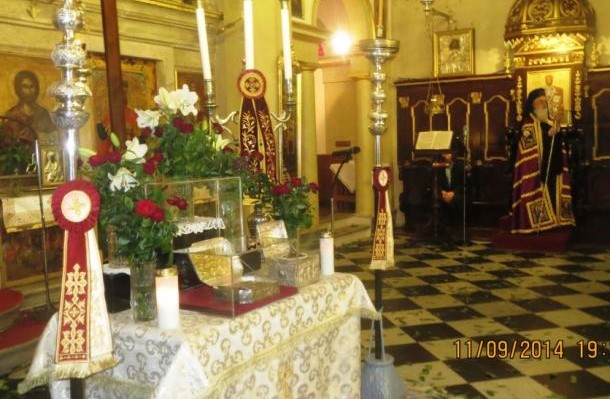 Τα ιερά κειμήλια υποδέχτηκε ο επιχώριος μητροπολίτης κ. Νεκτάριος το απόγευμα της Πέμπτης, ενώ στον εσπερινό που ακολούθησε χοροστάτησε και μίλησε ο επίσκοπος Ναζιανζού κ. Θεοδώρητος.