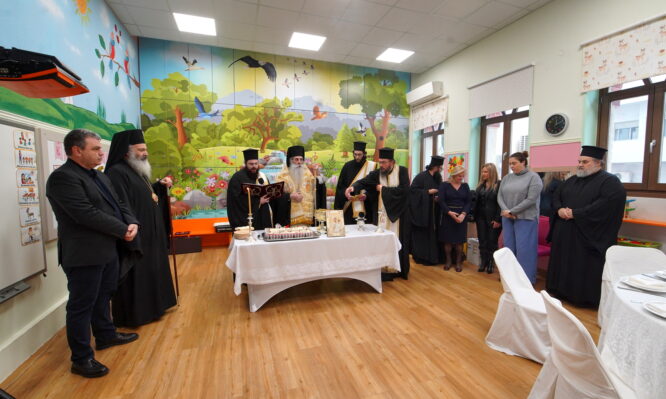 Ο Σεβασμιώτατος Μητροπολίτης Πειραιώς κ. Σεραφείμ, συνοδευόμενος από τον Θεοφιλέστατο Επίσκοπο Αχελώου κ. Νήφωνα, βοηθό Επίσκοπο και Πρωτοσύγκελλο της Ιεράς Μητροπόλεως Πειραιώς, αρχικά τέλεσε την Ακολουθία του Αγιασμού, με αφορμή νέες εργασίες ανακαίνισης των χώρων των Εκπαιδευτηρίων μας, οι οποίες ολοκληρώθηκαν και έδωσαν, πραγματικά, μία νέα μορφή στις εγκαταστάσεις του Βρεφονηπιακού Σταθμού, του Παιδικού Σταθμού και του Νηπιαγωγείου μας.