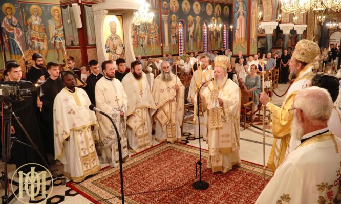 Την Κυριακή 24 Αυγούστου (ΙΑ´ Ματθαίου), στον ενοριακό Ιερό Ναό Μεταμορφώσεως του Σωτήρος, τελέσθηκε Αρχιερατικό Συλλείτουργο, ιερουργούντος του Σεβασμιωτάτου Μητροπολίτου Χαλκίδος κ. Χρυσοστόμου και συλλειτουργούντος του Ποιμενάρχου μας, Μητροπολίτου Θεσσαλονίκης κ. Φιλοθέου. Στο Ιερό Βήμα παρέστη συμπροσευχόμενος ο Σεβ. Μητροπολίτης Βελεστίνου κ. Δαμασκηνός. Τον θείο λόγο, κήρυξε ο Σεβασμιώτατος Μητροπολίτης Χαλκίδος κ. Χρυσόστομος, αναφερόμενος στην […]
