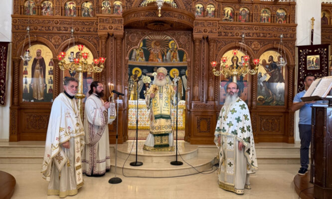 Tην Κυριακή ΙΑ΄ Ματθαίου, 24 Aυγούστου 2025, ο Σεβ. Μητροπολίτης Ιεραπύτνης και Σητείας κ. Κύριλλος χοροστάτησε κατά την ακολουθία του Όρθρου και στη συνέχεια ιερούργησε στον Ιερό Καθεδρικό Ναό Αγίας Φωτεινής Ιεράπετρας. Πριν την Απόλυση τέλεσε τα ιερά μνημόσυνα των μακαριστών Μαρίας Βασιλάκη –Παπαδάκη (τεσσαρακονθήμερο) και Κωνσταντίνας Χαλμίση (εννεαμήμερο) Τον Θείο λόγο κήρυξε κατά προτροπή […]