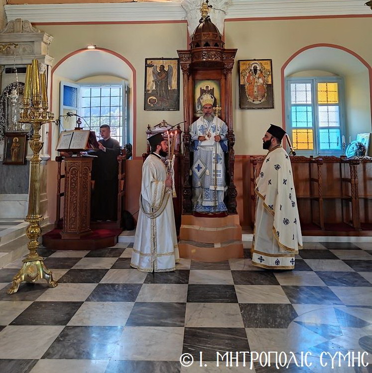 Κυριακή 3η Σεπτεμβρίου 2023, ὁ Σεβ. Μητροπολίτης Σύμης κ. Χρυσόστομος χοροστάτησε εἰς τόν Ὄρθρο καί τέλεσε τήν Θεία Λειτουργία εἰς τόν Ἐνοριακό Ἱ. Ναό τοῦ Ἁγίου Ἐλευθερίου Σύμης, μέ συλλειτουργούς του τόν Ἐφημέριο π. Φιλόθεο Κάλφα καί τόν Ἱεροδιάκονο π. Παῦλο Τερεζάκη, ἐνῶ τό ἱ. Ἀναλόγιο διακόνησαν οἱ Ἱεροψάλτες κ. Ἐλευθέριος Ξηράκης καί κ. Ἀναστάσιος Μπαλής.