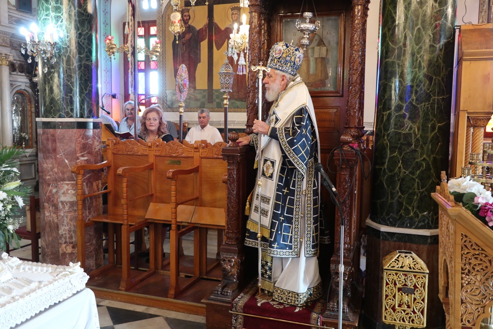 Ανεφέρθη, επίσης, και στα χαρίσματα της αειμνήστου, και ιδιαιτέρως στη φιλανθρωπία και την έμπρακτη αγάπη της προς την Εκκλησία, αλλά και στην ανατροφή που έδωσε στα παιδιά της, τα οποία συνεχίζουν την παράδοση και τηρούν τις παρακαταθήκες των γονέων τους, τις οικογένειες των και συνεχάρη για την αγάπη τους προς το Ναό και το γενέθλιο τόπο τους.