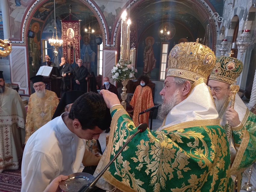 Πριν την απόλυση ο σεπτός Ποιμενάρχης μας εξέφρασε την μεγάλη του χαρά και τις θερμές ευχαριστίες του προς τον Σεβασμιώτατο Μητροπολίτη Γόρτυνος και Μεγαλοπόλεως κ. Νικηφόρο για την ευλογητή παρουσία του στην Ι. Μητρόπολή μας, καθώς τους συνδέουν πολύ ισχυροί πνευματικοί δεσμοί από τους χρόνους που ο Ποιμενάρχης μας υπηρετούσε στην Ι. Μητρόπολη Χαλκίδος. Ως ανάμνηση του δώρισε ένα Αρχιερατικό Εγκόλπιο και ένα Αρχιερατικό μπαστούνι, ενώ του επεφύλαξε την χαρά να τελέσει την εις Αναγνώστη Χειροθεσία του μαθητή της Β’ Τάξης Λυκείου Παναγιώτη Μαρινόπουλου, κατοίκου Κορίνθου, ο οποίος από μικρό παιδί διακονεί στο Ιερό Βήμα της Ενορίας Κοιμήσεως της Θεοτόκου Συνοικισμού Κορίνθου.