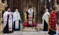 Την Κυριακή που η Εκκλησία μας την ονομάζει ΤΗΣ ΑΠΟΚΡΕΩ και προετοιμάζεται ο Λαός του Θεού για να υποδεχθεί την ευλογημένη περίοδο της Αγίας και Μεγάλης Τεσσαρακοστής, αφού από την επομένη από αυτήν εβδομάδα- τη λεγομένη ΤΗΣ ΤΥΡΟΦΑΓΟΥ- δεν καταλύεται κρέας πλέον και ουσιαστικά εκκινεί η προετοιμασία της νηστείας των τεσσαράκοντα ημερών προ του Αγίου Πάσχα, ώστε οι πιστοί να μετάσχουμε συνειδητά στο μέγα γεγονός του Σταυρού και της Αναστάσεως του Κυρίου, ο Σεβασμιώτατος Μητροπολίτης κ. ΘΕΟΚΛΗΤΟΣ ακολουθούμενος από τον Παν. Αρχιμ. π. Νικόδημο Κωτινούδη και τους Διακόνους του π. Νικόλαο Τσεπίση, π. Δημήτριο Κουρλετάκη και π. Αλέξανδρο Αλιφέρη μετέβη στον περικαλλή Ιερό Ναό Κοιμήσεως της Θεοτόκου και Αγίων Τεσσαράκοντα Μαρτύρων Γοματίου, καθότι το Εκκλησιαστικό Συμβούλιο του Ναού μετέθεσε την Εορτή των Προστατών του, που άφησαν την τελευταία τους πνοή ως μαρτυρία πίστεως προς τον Κύριό μας στη λίμνη της Σεβαστείας της Καππαδοκίας στις αρχές του 4ου αιώνος μ.Χ. επί Λικινίου, από το Σάββατο 9η , κατά την σημερινή Κυριακή 10η Μαρτίου, αφού είναι γνωστό ότι αυτό το Σάββατο – 9η Μαρτίου- για φέτος συνέπεσε με το Α΄ Ψυχοσάββατο του Τριωδίου. Τον πλαισίωσαν ο ασκητικός αγιορείτης Εφημέριος του Ναού Παν. Αρχιμ. π. Διονύσιος Βάραγκας και ο Αιδ. π. Σπυρίδων Μποτονάκης εκ της Ι.Μ. Καρπενησίου. Να σημειωθεί ότι ο Ιερός Ναός Κοιμήσεως της Θεοτόκου και Αγίων Τεσσαράκοντα ανηγέρθη εκ βάθρων από τον Γέροντα του π. Διονυσίου, αγιορείτη Αρχιμανδρίτη κυρό Αναστάσιο Τοπούζη, εμβληματικό Προϊστάμενο του ιστορικού Κελλίου του Τιμίου Προδρόμου, Διονυσίου του εκ Φουρνά των Αγράφων. Σήμερα την ιστορική πορεία του Καρεώτικου Κελλίου Διονυσίου του εκ Φουρνά, συνεχίζει με πολλή πιστότητα και αγιορείτικη σεμνομεγαλόπρεπη πνοή ο π. Διονύσιος Βάραγκας, τον οποίο έχρισε διάδοχό του εν Πετραχηλίω ο Γέροντας Αναστάσιος ολίγον προ της κοιμήσεώς του, σε εξομολόγησή του στον Σεβ. Επίσκοπό μας προ δύο ετών περίπου.
