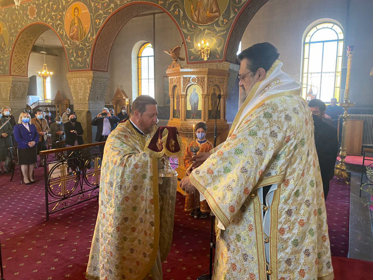 Πρό του πέρατος της Θείας Λειτουργίας ο Μητροπολίτης, τιμώντας την ευσυνειδησία και το ήθος του εφημερίου του Ναού π. Ανδρέα Γεωργακόπουλου τον περικόσμησε με το οφφίκιο του Οικονόμου, ενώ εξέφρασε την ευαρέσκειά του και προς τους δύο εφημερίους του Ναού για την εύρυθμη και υποδειγματική λειτουργία της Ενορίας αυτής.