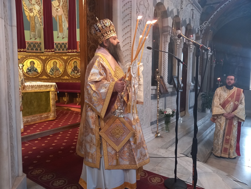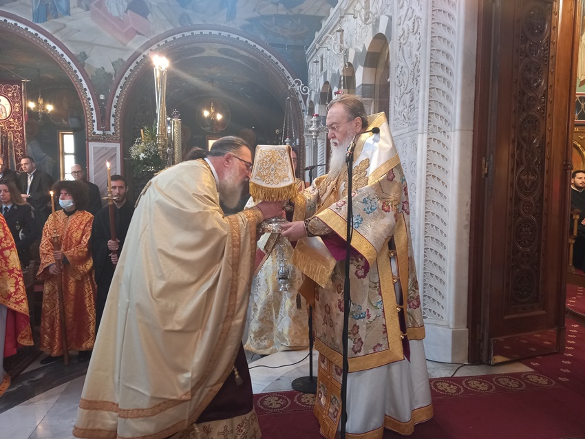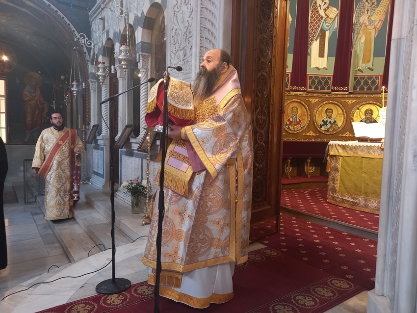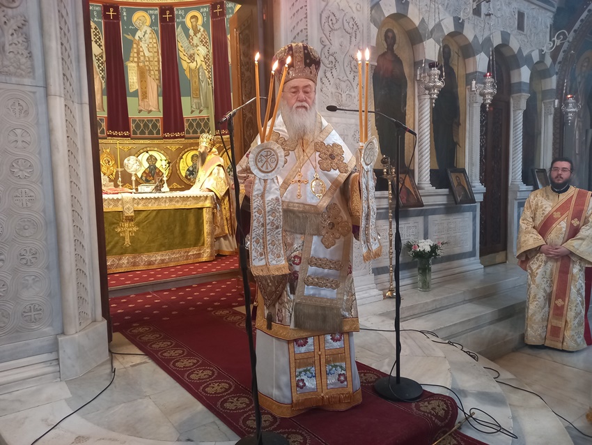 Στον κήρυγμα του ο σεπτός Ποιμενάρχης, εμφανώς συγκλονισμένος από το δυστύχημα στα Τέμπη και την «εικόνα» με τις μητέρες των αδικοχαμένων θυμάτων να κρατούν στα χέρια τους τις φωτογραφίες των παιδιών τους και με τα μάτια τους γεμάτα δάκρυα και αγωνία να προσπαθούν να μάθουν αν ζουν ή αν πέθαναν, έκανε τον συνειρμό με την σημερινή «εικόνα» του Πιστού Λαού, των Αρχόντων και των Στρατιωτικών και λοιπών Εκπροσώπων που κρατούσαν τις Ι. Εικόνες στα χέρια τους αναζητώντας την απάντηση τι εκφράζει η αναστήλωση των Ι. Εικόνων και τι προσφέρει η Εκκλησία με την πανηγυρική εγκόλπωση τους από τους Πιστούς και ζητώντας κατ᾿ αυτόν τον τρόπο από τους Αγίους μας την λύση των προβλημάτων μας και την μεσιτεία τους για την σωτηρία! Η σκοτεινή αυτή περίοδος του Γένους μας, η Εικονομαχία, που διήρκησε 100 και πλέον χρόνια και έληξε σαν σήμερα, μας θυμίζει ότι κρατάμε αυτές τις Εικόνες όχι γιατί αναζητούμε τους Αγίους μας αλλά για να δηλώσουμε ότι Αυτοί εθελούσια μαρτύρησαν και έδωσαν την ζωή τους προκειμένου το πλήρωμα της Εκκλησίας να οδηγηθεί στην «Ζωή και την Ανάσταση» και να αποδιώξουν από την Εκκλησία μας την «οσμή του θανάτου» του μεταπτωτικού ανθρώπου. Ότι δηλαδή έφτασαν για ᾿κει που ξεκίνησαν.