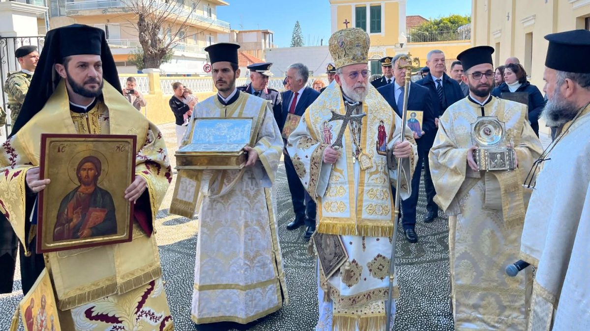 Με κατάνυξη και κατά την ισχύουσα λειτουργική τάξη εορτάσθηκε η Κυριακή της Ορθοδοξίας στον Μητροπολιτικό ιερό Ναό Εισοδίων της Υπεραγίας Θεοτόκου, ιερουργούντος του Σεβασμιωτάτου Ποιμενάρχου μας κ. κ. Κυρίλλου και συλλειτουργούντων του Θεοφιλεστάτου Επισκόπου Ολύμπου κ. Κυρίλλου, του Πρωτοσυγκέλλου της Ιεράς Μητροπόλεως π. Θεωνά Καμπέρη, του Εφημερίου του ιερού Ναού π. Ισιδώρου Παφιάκη και των Διακόνων π. Νικηφόρου Γιαννίκου και Τίτου Σωτηράκη. Παρέστησαν οι Βουλευτές Μάνος Κόνσολας και Βασίλειος Υψηλάντης, καθώς και εκπρόσωποι των Αρχών της πόλεως.